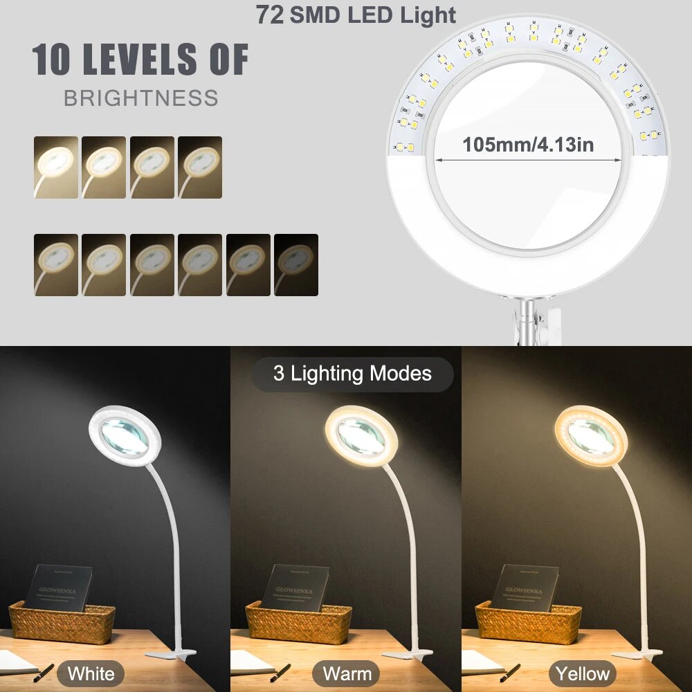 NEWACALOX 5-кратная лупа с подсветкой, гибкая светодиодная настольная лампа на гибкой стойке, 3 цветовых режима, бесступенчатая лупа с регулируемой яркостью, White 5X Magnifier, 105 mm, 5X: сравнение цен, характеристики, фото, актуальное наличие и цены.