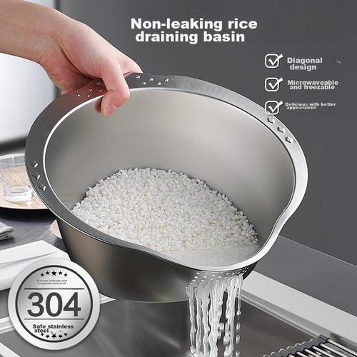 Товар Newair 304 Stainless Steel Draining Basket, Multifunctional Rice Washing Tool, Rice Washing Sieve, Fruit Plate, Household Kitchen-Specific Vegetable Washing Basin