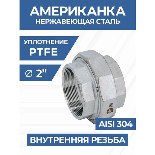 Американка выполнена из нержавеющей стали AISI304, что обеспечивает ее прочность и долговечность в условиях эксплуатации. Данный продукт имеет диаметр 2 дюйм (DN50) и соответствует стандарту CF8, что делает его совместимым с большинством трубопроводных систем.
