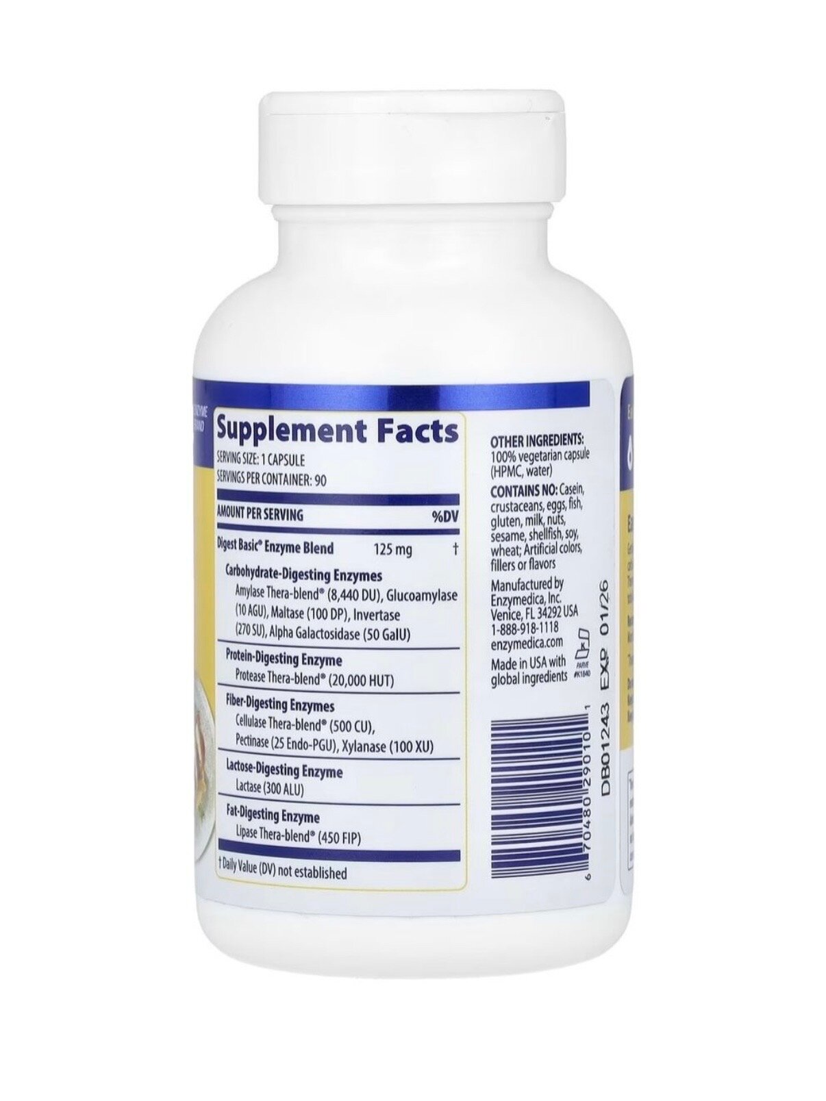 Enzymedica Digest Basic (состав с основными ферментами) 90 капсул: сравнение цен, характеристики, фото, актуальное наличие и цены.