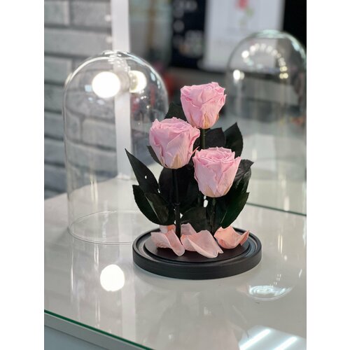 Вечная Роза в колбе Трио «Премиум» в подарочной коробке с вау эффектом в нежно розовом оттенке! 27 см Наши стабилизированные цветы не завянут 5 лет! Стабилизированные розы, выращены на плантациях Эквадора и срезанных на пике цветения, прошли процесс стабилизации, который замораживает процесс старения цветка, листьев и стеблей. Такая технология сохраняет эластичность и свежесть цветов до 5 лет!