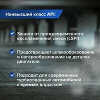 температура вспышки в открытом тигле 221 °С Индекс вязкости 170 Температура застывания -39 °С Плотность при 20°С 854 кг/м³ Вязкость кинематическая при 40°С 65.3 сСт Вязкость кинематическая при 100°С 11.4 сСт, для легковых