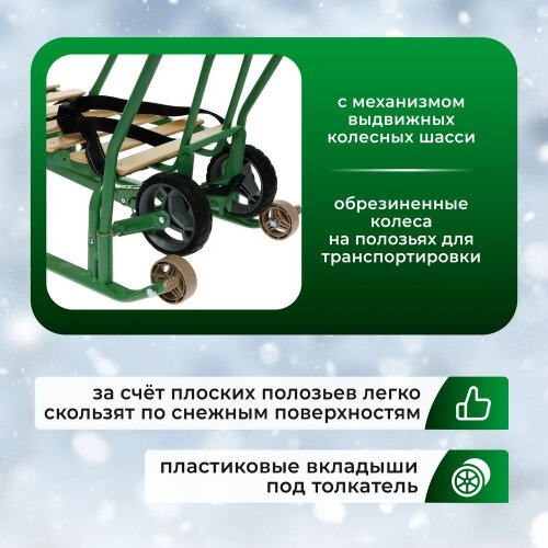 | Дополнительная информация | съемная спинка, круглые полозья, поперечная перекладина для ног, буксировочный трос, съёмная ручка-толкатель, колёсики. |