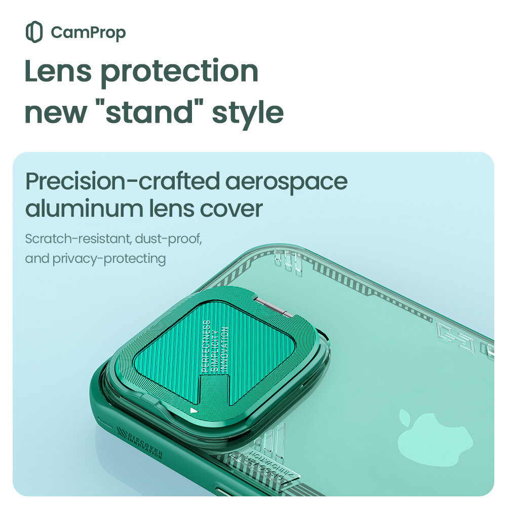 Чехол прозрачный зеленого цвета от Nillkin с металлической откидной крышкой для камеры на iPhone 16 Pro, серия Iceblade Prop Case: сравнение цен, характеристики, фото, актуальное наличие и цены.