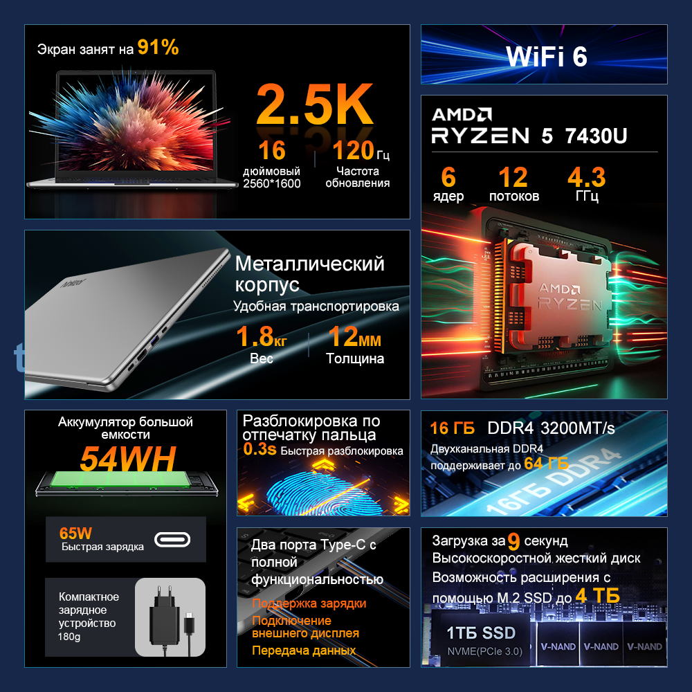Ninkear A15 Pro 6 ядра и 12 потока Ноутбук 15.6″, AMD Ryzen 5 7430U, RAM 16 ГБ, SSD 1024 ГБ, Windows Pro: сравнение цен, характеристики, фото, актуальное наличие и цены.