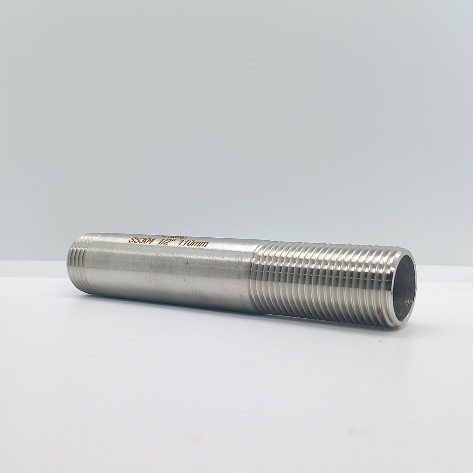 Ниппель 3/4 дюйма двойной (сгон 3/4) нержавеющий Ду 20 3/4" AISI 304 представляет собой часть трубы (сгон 20 мм) с определенным диаметром, тонкой наружной резьбой с двух сторон: с одной – длинная, с другой – короткая. Длина общая- 110 мм Длинная резьба- 45 мм Короткая резьба-10,5 мм Величина длинного резьбового отрезка доходит до 30 нитей. Данный параметр разрешает накрутить контргайку и нержавеющую муфту. Соединение при помощи сгонов труб (ниппель 20мм), одинаковых по диаметру, выполняется благодаря резьбе. В результате использования сгона участки трубопровода демонтируются без разбора всей системы, замена труб проводится на конкретных участках. Конструкция соединяет между собой две трубы или деталь с вентилем и фитингом. Элементы соединяются без прокрутки.