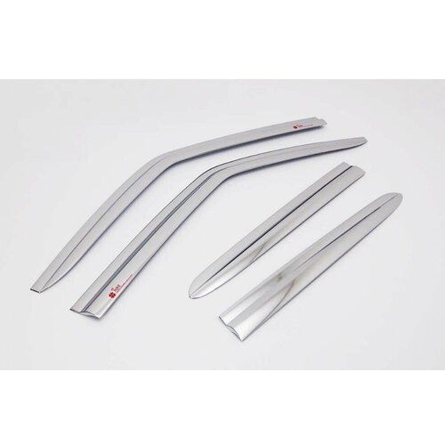 Плоские тюнинг дефлекторы с хромом для окон Kia K5 / Ветровики 2d дефлекторы для окон Киа К5. Комплект 6 шт.
