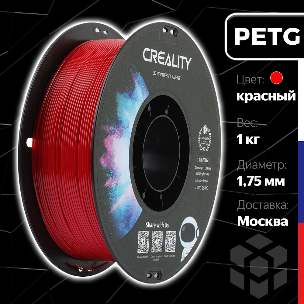 Купить Нить для 3D-принтера Creality PETG, 1 кг, диаметр 1.75 мм, красный с доставкой по всей России. Нить для 3D-принтера Creality PETG, 1 кг, диаметр 1.75 мм, красный: сравнение цен, характеристики, фото, актуальное наличие и цены.