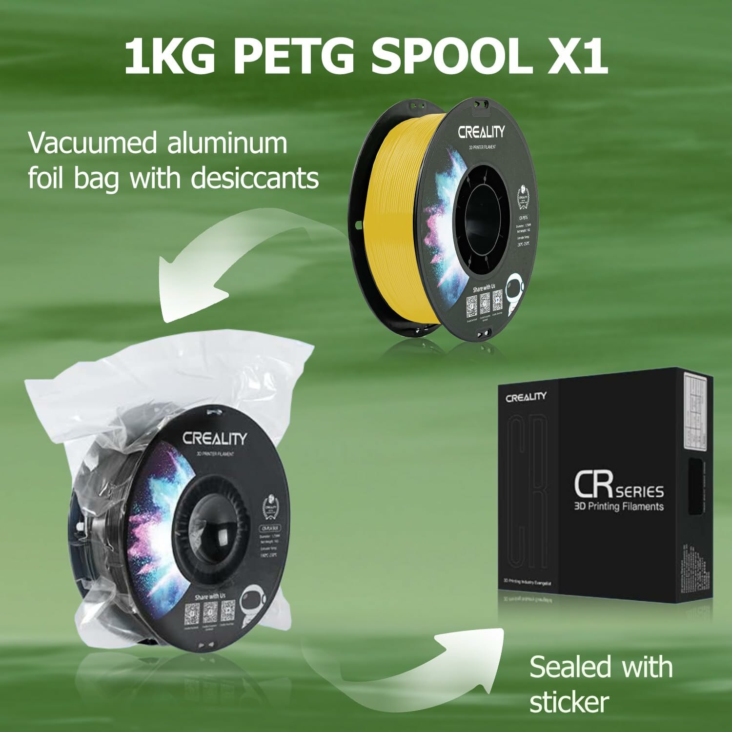 Название продукта: CR-PETG N. W: 1 кг Температура печати: 230-250 ℃ Прочность на разрыв: 49 МПа Вес упаковки: 1,15 кг Пузырь: нет Размер упаковки: 210*210*75 мм Диаметр нити: 1,75 мм Допуск: ±0,03 мм Цвет: прозрачный, красный, синий, зеленый, желтый, белый, черный