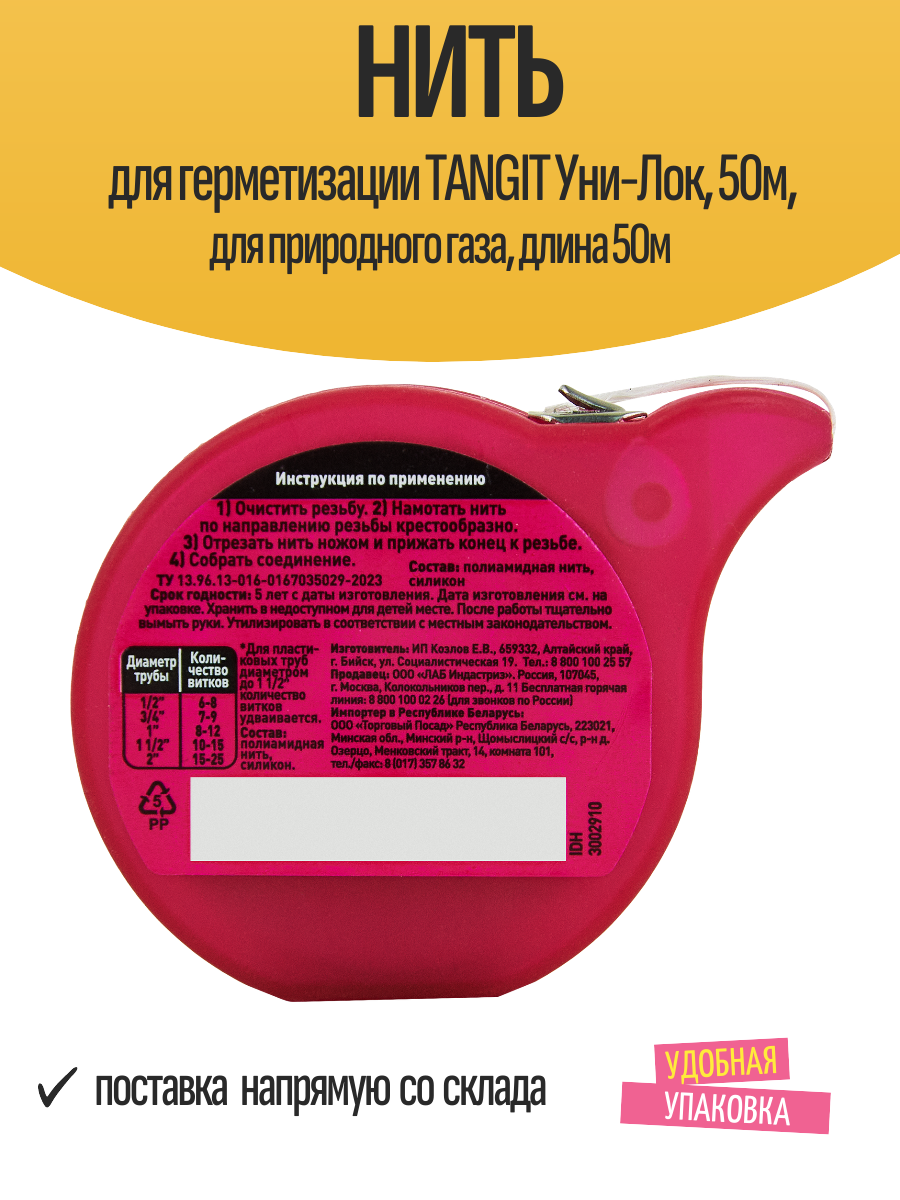 Купить Нить для герметизации TANGIT Уни-Лок, 50м, для природного газа, длина 50м с доставкой по всей России. Нить для герметизации TANGIT Уни-Лок, 50м, для природного газа, длина 50м: сравнение цен, характеристики, фото, актуальное наличие и цены.