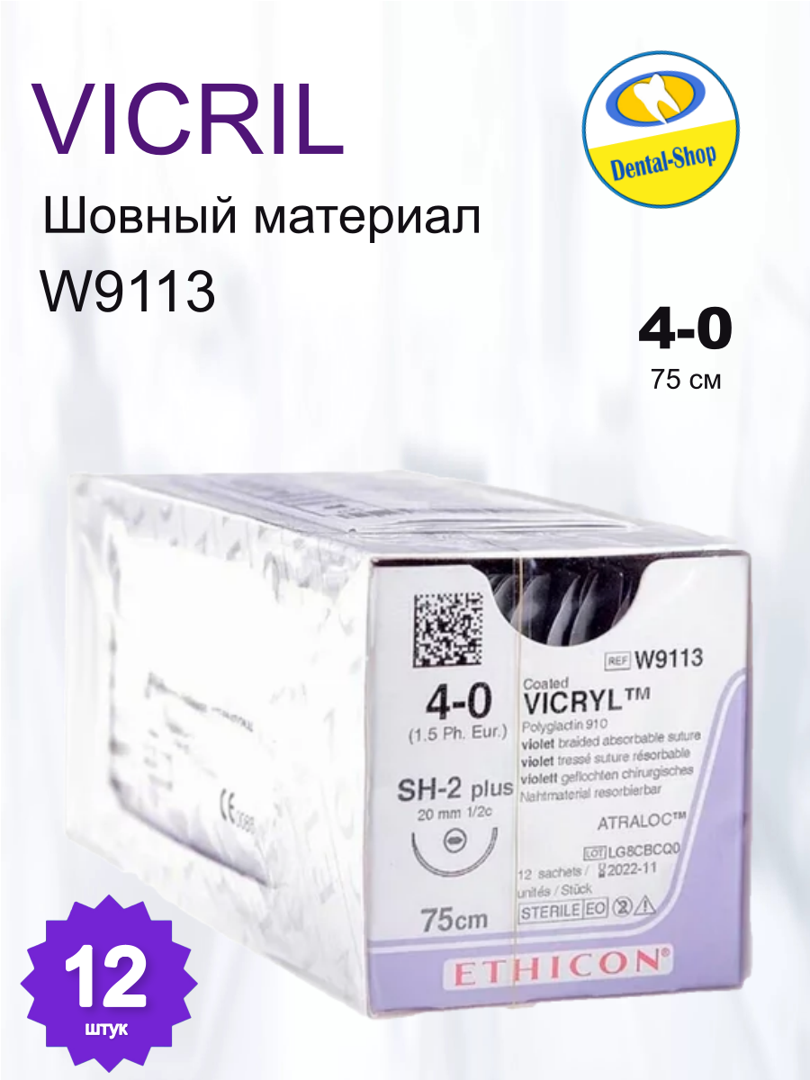 Нить хирургическая Ethicon VICRYL 4-0, рассасывающаяся, с атравматичной иглой, фиолетовая, 75см (12 шт): сравнение цен, характеристики, фото, актуальное наличие и цены.
