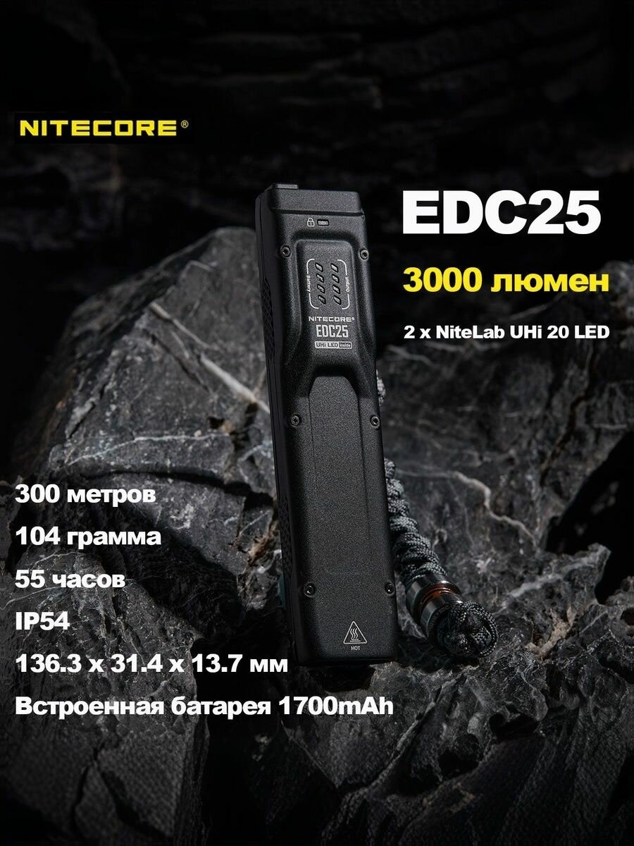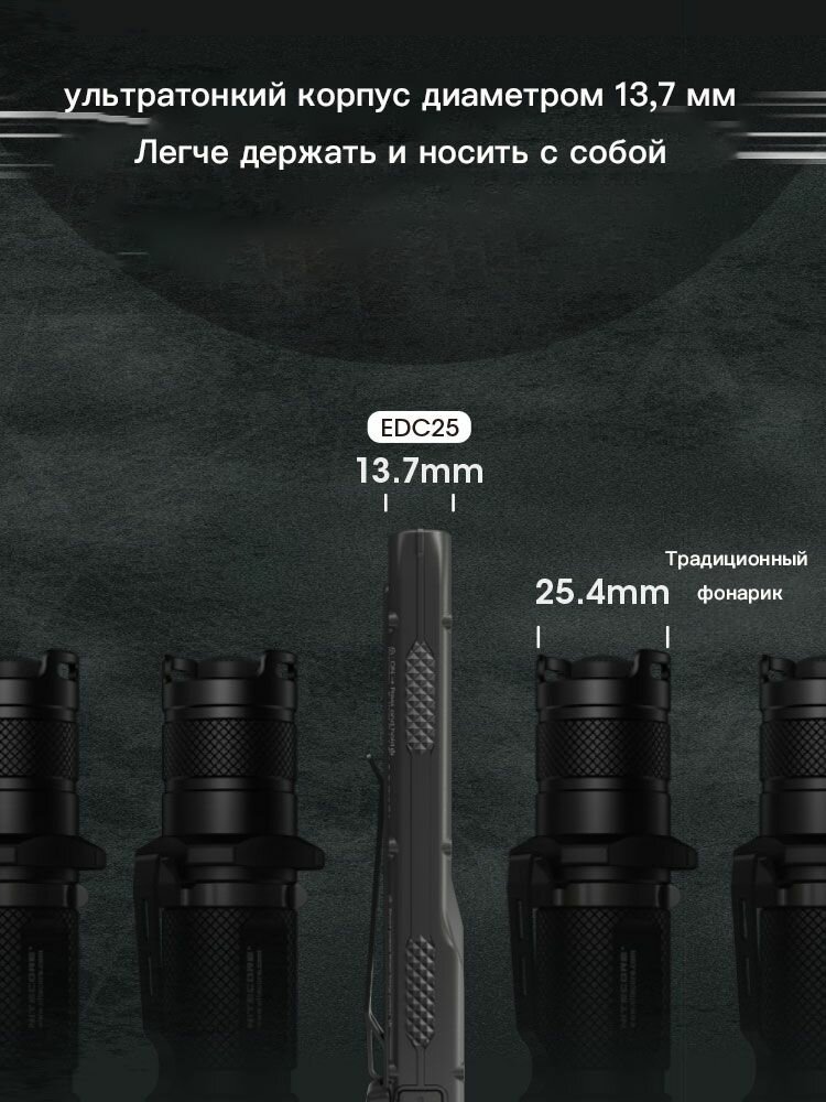 Купить NITECORE EDC25, Сверхтонкий тактический фонарь EDC, 3000 люмен UHi 20 LED уровень защиты IP54 с доставкой по всей России.