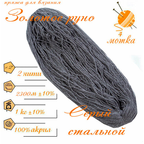 Купить Нитки для ручного вязания (4 шт. 1кг/2300 м), пряжа двухниточная в пасмах (250-300 гр/шт.) 100% акрил (Серый стальной) с доставкой по всей России. Нитки для ручного вязания (4 шт. 1кг/2300 м), пряжа двухниточная в пасмах (250-300 гр/шт.) 100% акрил (Серый стальной): сравнение цен, характеристики, фото, актуальное наличие и цены.