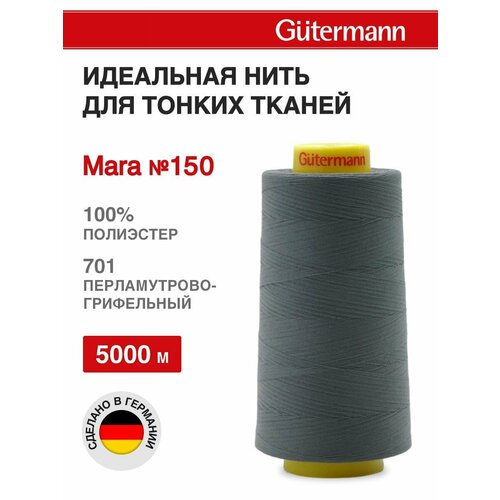 Купить Нитки швейные для деликатных тканей Gutermann Mara 150, 5000 м, 100% полиэстер, 713961 (701 перламутрово-грифельный) с доставкой по всей России. Нитки швейные для деликатных тканей Gutermann Mara 150, 5000 м, 100% полиэстер, 713961 (701 перламутрово-грифельный): сравнение цен, характеристики, фото, актуальное наличие и цены.