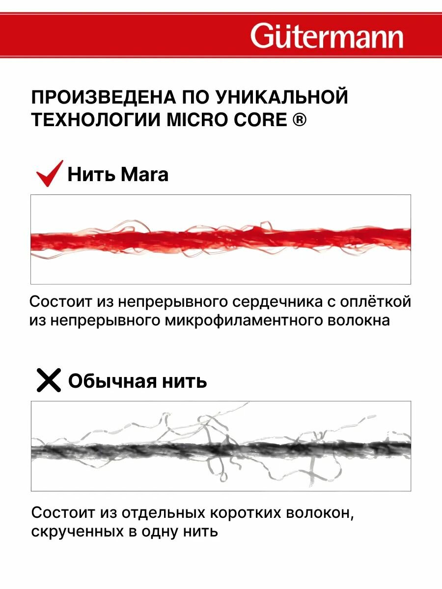 Gutermann Mara 120 – универсальная нить премиального качества. Подходит для различных швов: стачных, отделочных, стегальных, оверлочных, обметочных, декоративных. Совместима с тканями любого типа.