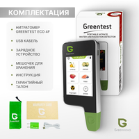 Greentest Eco 4F — это уникальный прибор 2-в-1 для измерения нитратов и радиации. Разработанный с использованием новейших технологий. Инновационный Greentest Eco 4F определяет уровень нитратов в 64 наиболее часто употребляемых фруктах и овощах, в мясе и в рыбе. Greentest Eco 4F, а также фоновое излучение в вашем непосредственном окружении предупреждают вас о небезопасном радиационном воздействии. Уникальная функция быстрого анализа Greentest Eco 4F дает показания за 3 секунды, и помогает понять -вредны ли ваша пища и окружающая среда для вашего здоровья.
