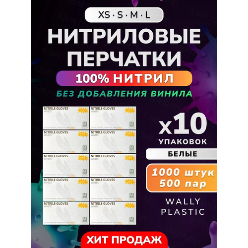 Wally plastic, Перчатки нитриловые одноразовые, гипоаллергенные, текстурированные — 1000 шт. ( 500 пар ) Цвет: Белый ; Размер: S: сравнение цен, характеристики, фото, актуальное наличие и цены.