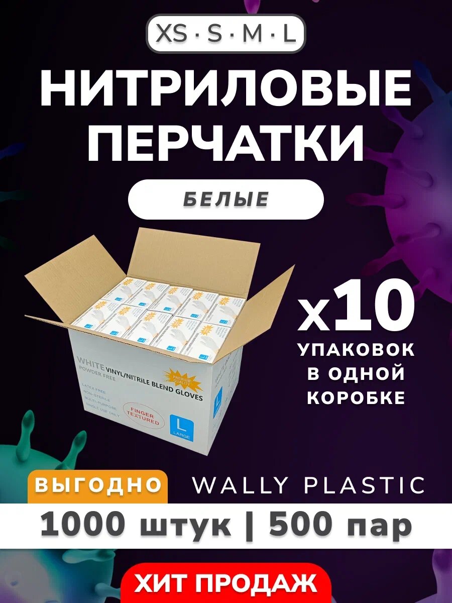 Нитриловые перчатки (нитрил-винил) — Wally plastic, 1000 шт. (500 пар), одноразовые, неопудренные Цвет: Белый; Размер S: сравнение цен, характеристики, фото, актуальное наличие и цены.