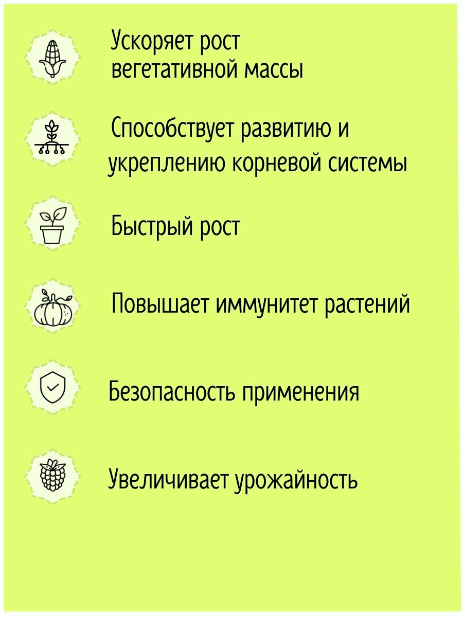 восстановление почвы, стимуляция роста и питание, укрепление иммунитета растений, ускорение созревания компоста