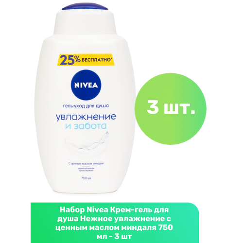 Купить Nivea Крем-гель для душа Увлажнение и забота с ценным маслом миндаля 750 мл — 3 шт с доставкой по всей России.