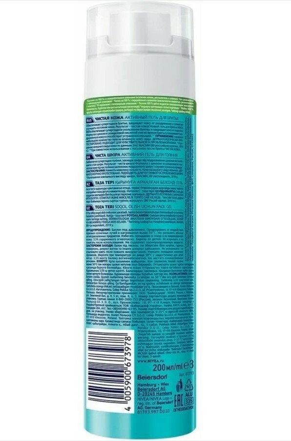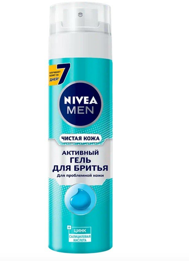 Беспокоят прыщи и другие кожные высыпания, и бритье становится пыткой? Тогда линейка средств для и после бритья NIVEA MEN Чистая Кожа для проблемной кожи с цинком и салициловой кислотой именно то, что тебе нужно. Гель для бритья NIVEA MEN Чистая кожа с суперингредиентами в составе сделают кожу чистой, а гладким и бритье приятным. Салициловая кислота бережно отшелушивает отмершую кожу и уничтожает бактерии, вызывающие прыщи. Цинк препятствует росту микроорганизмов и уменьшает раздражение кожи. Улучшает внешний вид кожи за 7 дней при ежедневном использовании. Для наилучшего эффекта используйте лосьон после бритья NIVEA MEN Чистая Кожа. Применение: хорошо встряхните перед использованием, держите баллон вертикально при выдавливании. Нанесите небольшое количество средства на влажное лицо.