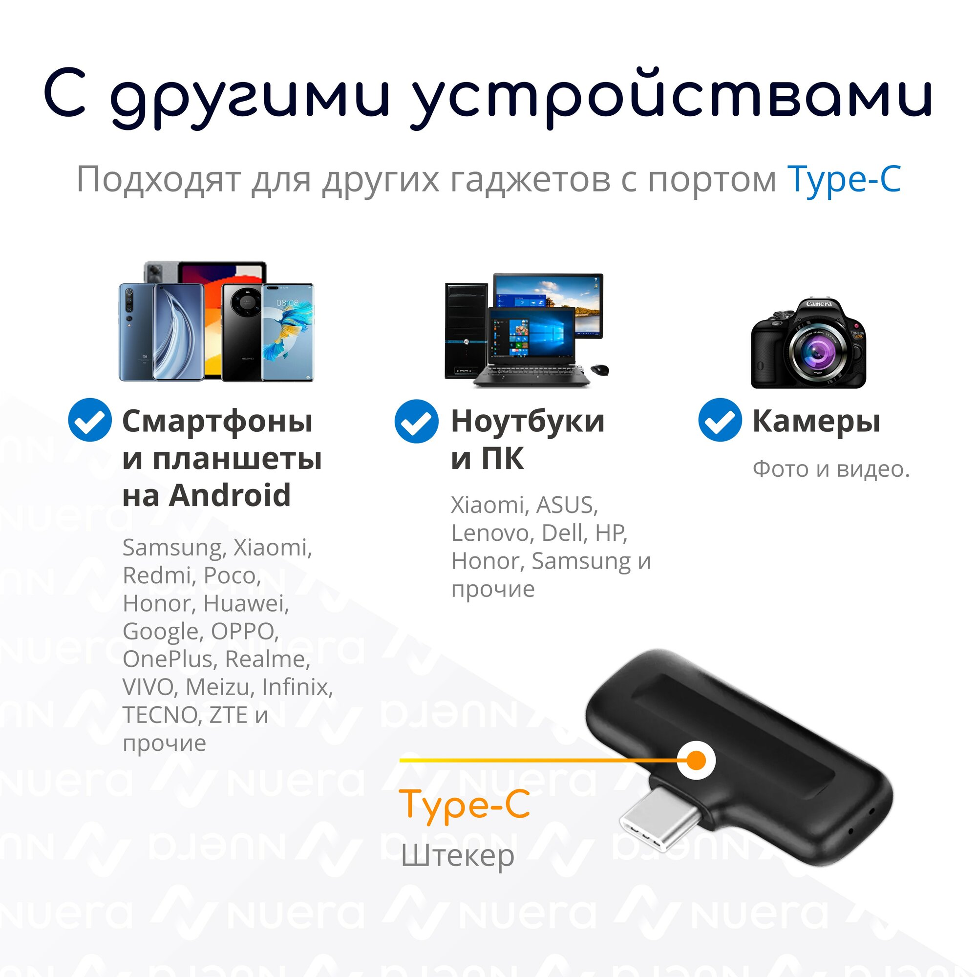 ❌ Микрофоны не будут работать на устройствах с другими разъемами (Lightning, Micro-USB и т. п.), даже при использовании качественного переходника.
