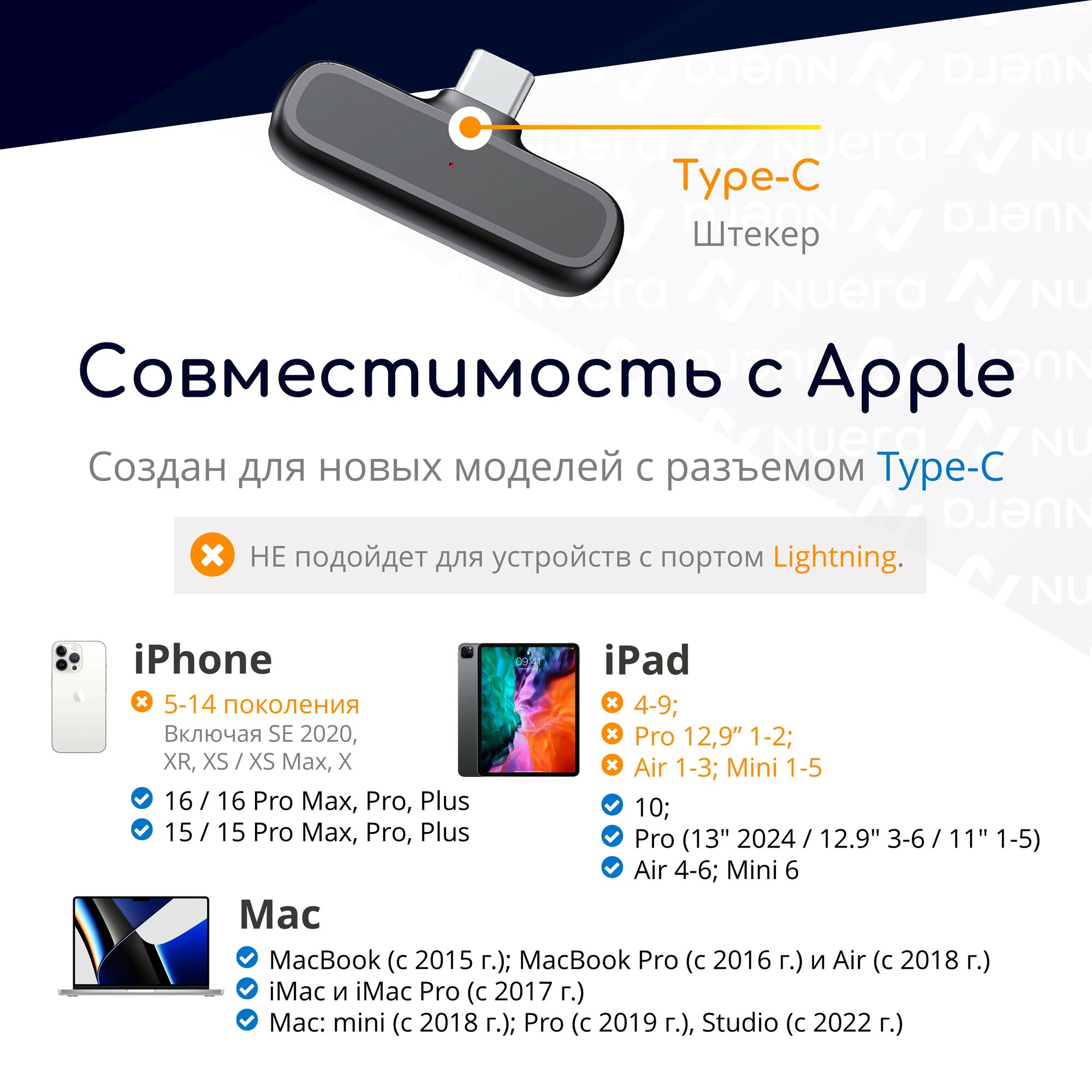 НЕсовместим с устройствами Apple с разъемом Lightning: