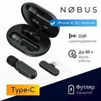 NOBUS K60-C - беспроводной микрофон петличка с приемником Type-C и магнитным зарядным кейсом, имеющим батарею емкостью 800 мАч. Предназначен для мобильных устройств с разъемом Type-C: Android смартфонов и планшетов, ноутбуков, фото- и видеокамер, iPhone 16 / 15 серии и новейших iPad.