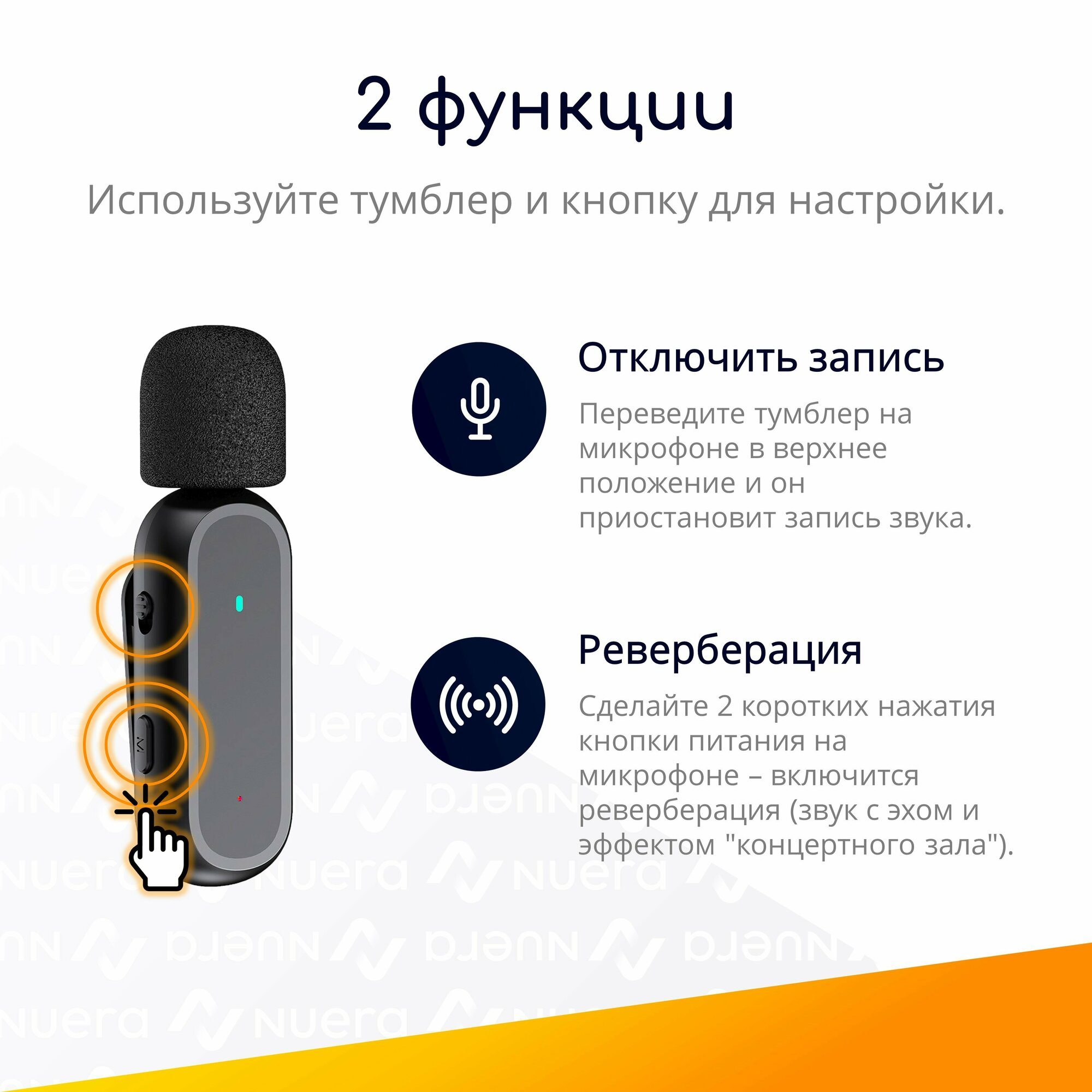 ️ Смена режима доступна только после сопряжения с ресивером. Для переключения сделайте 2 коротких нажатия кнопки питания на микрофоне. При успешной смене режима лампочка на микрофоне меняет цвет на красный, а затем снова на зеленый.