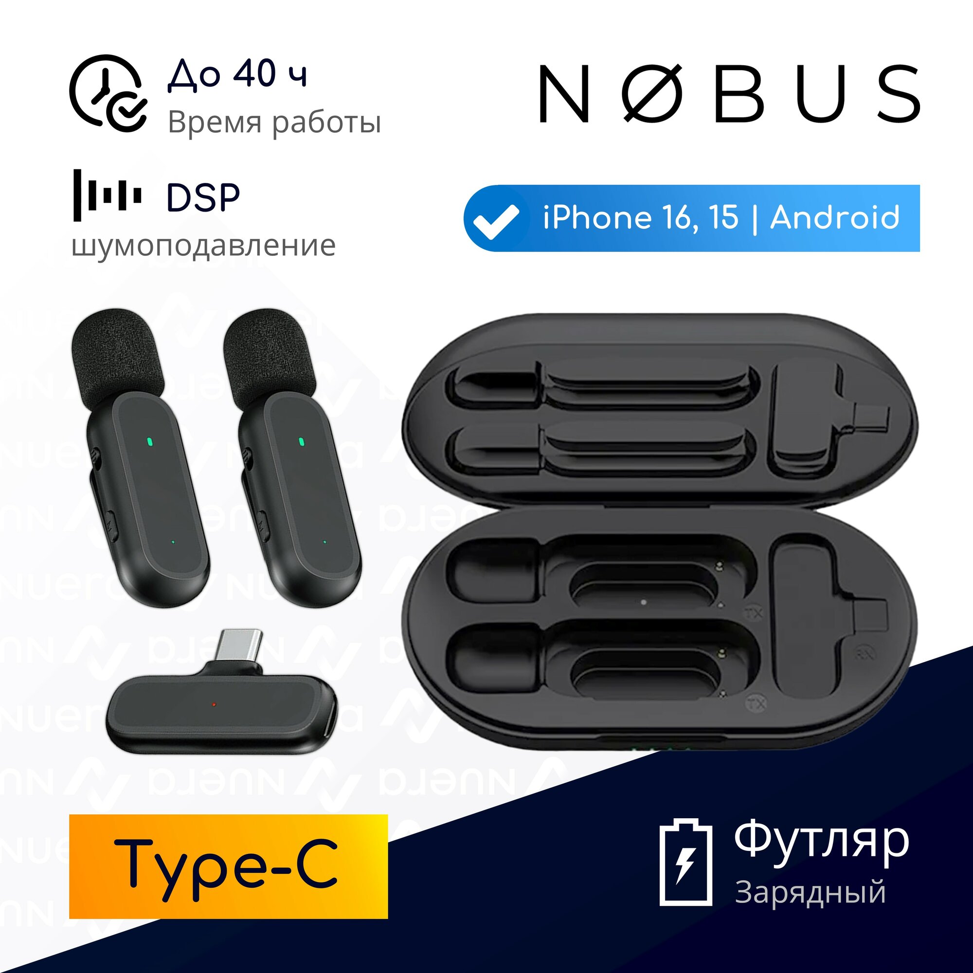 Комплект NOBUS K61-C включает 2 петличных микрофона, приемник с штекером Type-C и магнитный зарядный кейс, имеющий батарею емкостью 800 мАч. Предназначен для мобильных устройств с разъемом Type-C: Android смартфонов и планшетов, ноутбуков, компьютеров, фото- и видеокамер, iPhone 16 / 15 серии и новейших iPad.