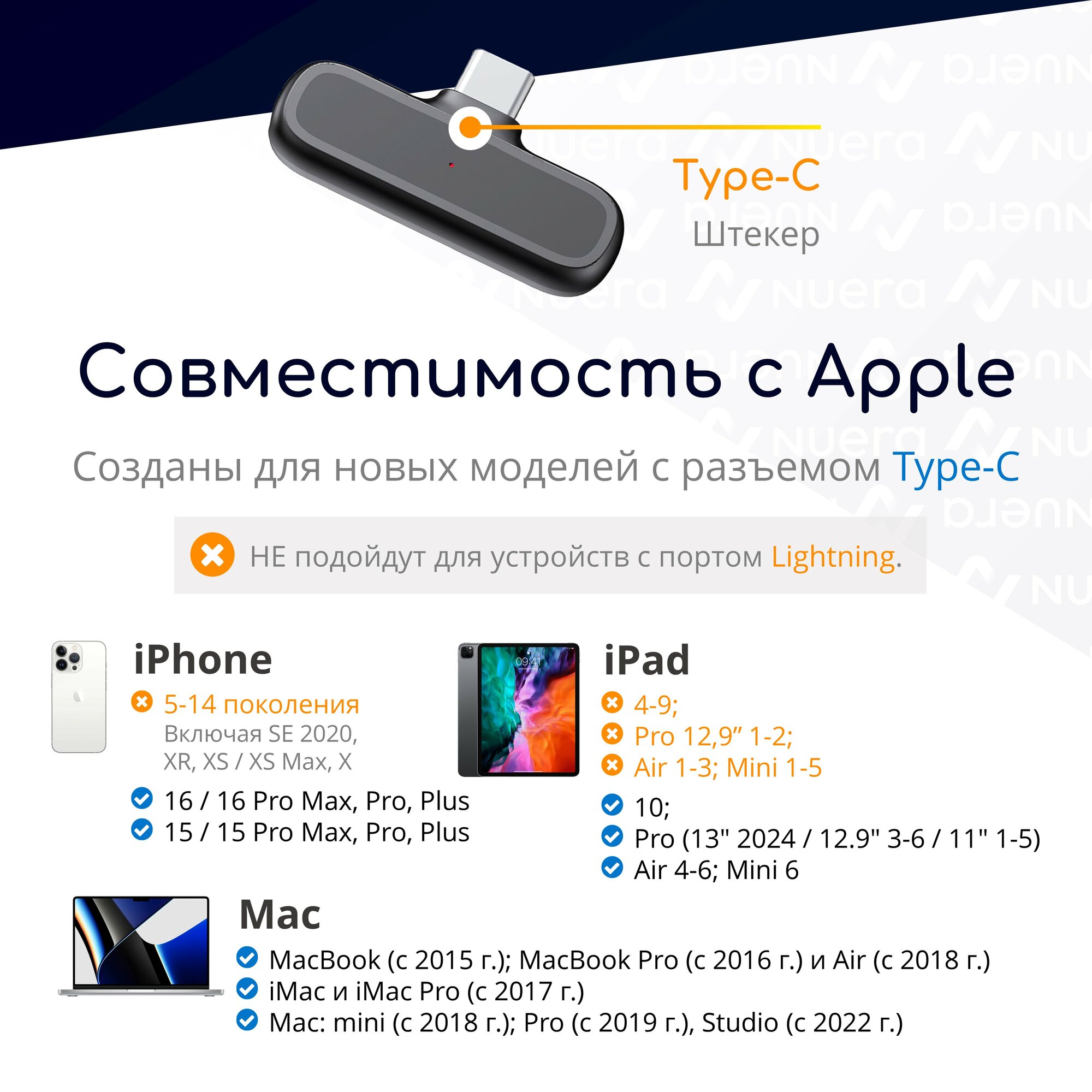 ❌ Микрофоны не будут работать на устройствах с другими разъемами (Lightning, Micro-USB и т. п.), даже при использовании качественного переходника.