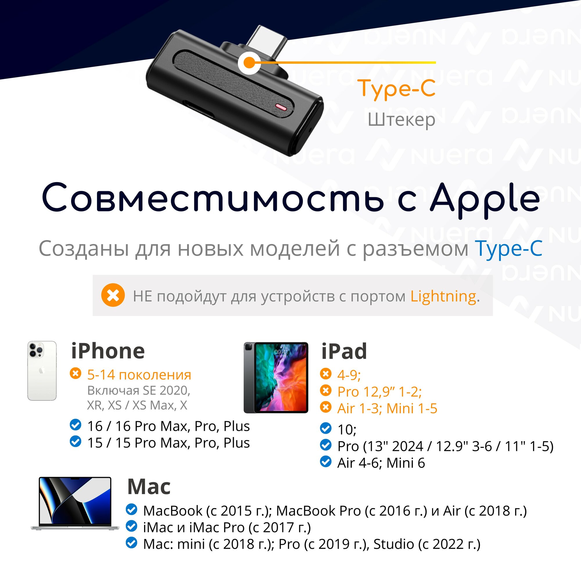 ❌ Микрофоны не будут работать на устройствах с другими разъемами, даже при использовании качественного переходника.