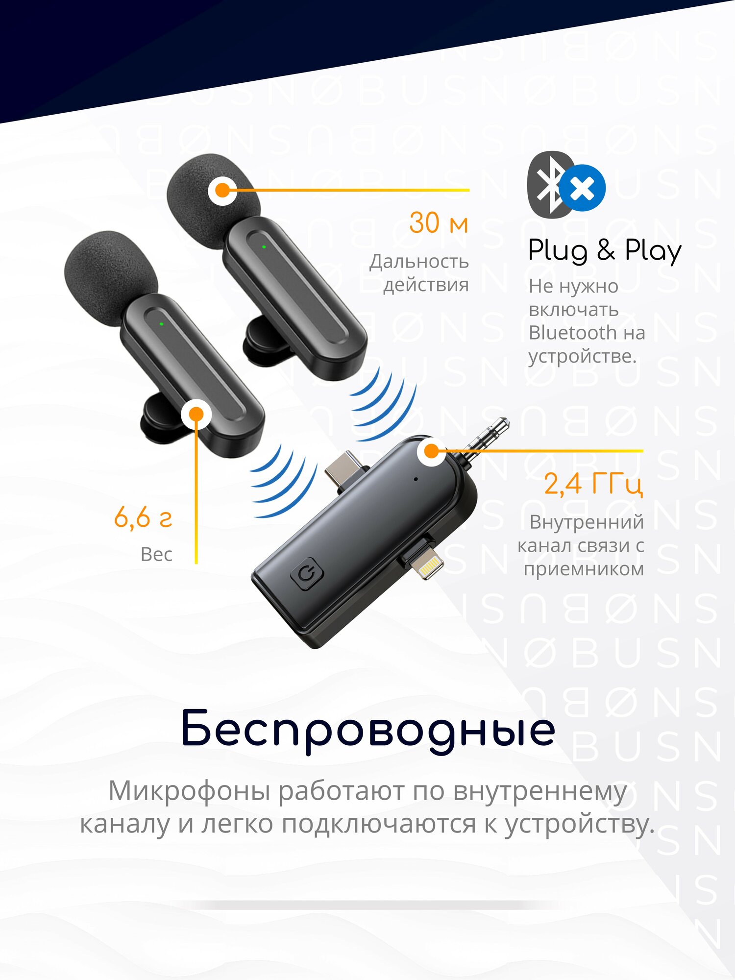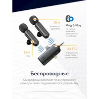 ✅ Автономия. Микрофоны работают по внутреннему каналу на частоте 2,4 ГГц. Вам не потребуется включать Bluetooth на вашем устройстве. Дальность действия - до 30 м при отсутствии препятствий и до 20 м с видимыми препятствиями. Микрофоны петлички для мобильных телефонов проработают до 4 часов в режиме записи.