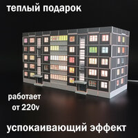 Декоративный ночник в виде панельного дома в 5 этажей Материал - пластик. Размер 29,6*11,9см. Высота 15,6см Питание - розетка 220v Этот светильник можно использовать практически в любом интерьере. От строгого офиса до детской комнаты. Он создаст уютную атмосферу в вашем доме или офисе. Светильник имеет форму пятиэтажного дома Он оснащен одной энергосберегающей лампой с патроном GX53, которая обеспечивает приятный свет без лишнего энергопотребления. Прекрасно вписывается в гостиную, спальню, кабинет, детскую комнату . Материал - пластик толщиной 4мм (не фанера!) Поставляется в разобранном виде, сборка не сложная, клеить ничего не нужно. Инструкция по сборке в комплекте.