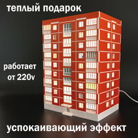 Декоративный ночник в виде панельного дома в 9 этажей Материал - пластик. Размер 19,5*13см. Высота 26,7см Питание - розетка 220v Этот светильник можно использовать практически в любом интерьере. От строгого офиса до детской комнаты. Он создаст уютную атмосферу в вашем доме или офисе. Светильник имеет форму девятиэтажного дома Он оснащен одной энергосберегающей лампой с патроном GX53, которая обеспечивает приятный свет без лишнего энергопотребления. Прекрасно вписывается в гостиную, спальню, кабинет, детскую комнату . Матераил - пластик толщиной 4мм (не фанера!) Поставляется в разобранном виде, сборка не сложная, клеить ничего не нужно. Инструкция по сборке в комплекте.