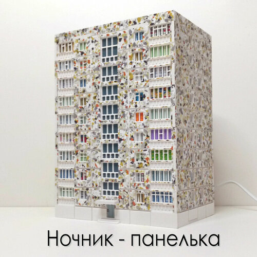 Декоративный ночник в виде панельного дома в 9 этажей Материал - пластик. Размер 19,5*13см. Высота 26,7см Питание - розетка 220v Этот светильник можно использовать практически в любом интерьере. От строгого офиса до детской комнаты. Он создаст уютную атмосферу в вашем доме или офисе. Светильник имеет форму девятиэтажного дома Он оснащен одной энергосберегающей лампой с патроном GX53 (современная лампа), которая обеспечивает приятный свет без лишнего энергопотребления. Прекрасно вписывается в гостиную, спальню, кабинет, детскую комнату . Матераил - пластик толщиной 4мм (не фанера!) Поставляется в разобранном виде, сборка не сложная, клеить ничего не нужно. Инструкция по сборке в комплекте.