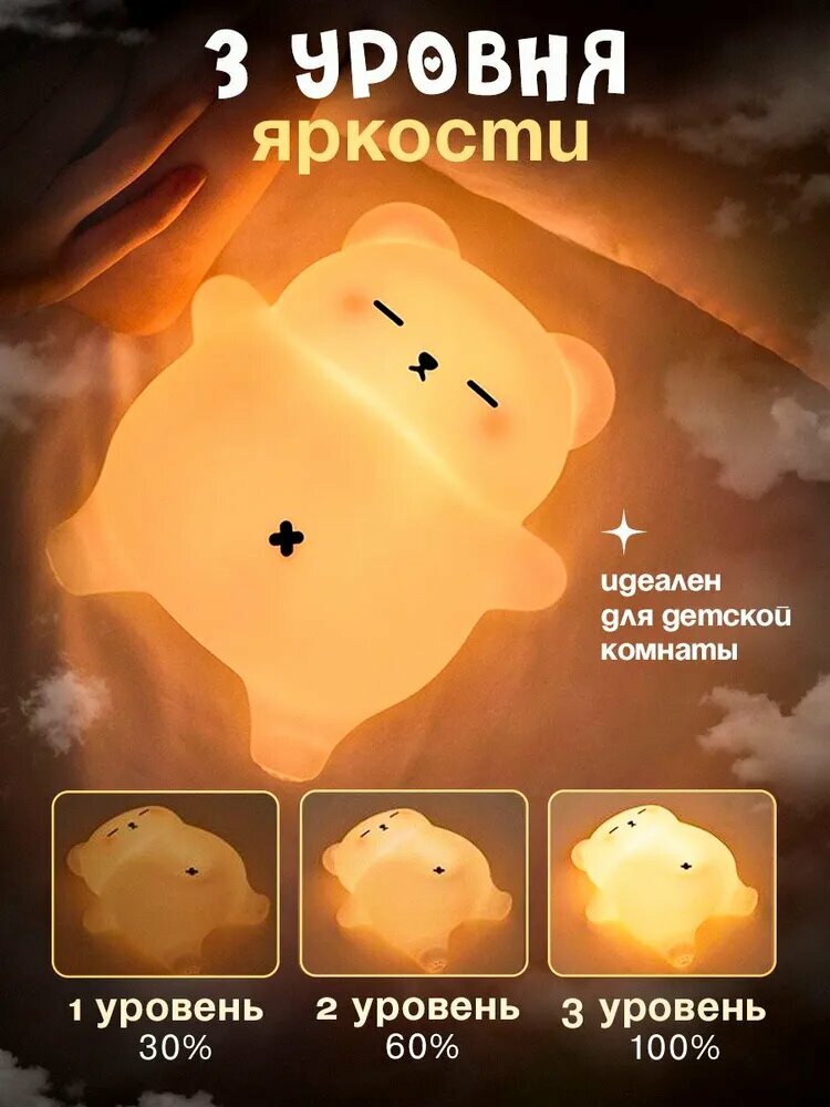 Купить Ночник детский с таймером и двигающим пузиком, беспроводной силиконовый светильник для детей, ребенка, Медвежонок храпящий с доставкой по всей России.