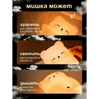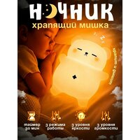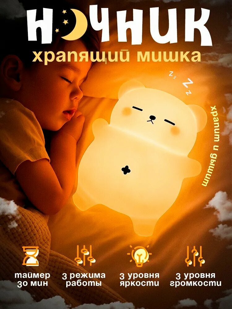Ночник детский с таймером и двигающим пузиком, беспроводной силиконовый светильник для детей, ребенка, Медвежонок храпящий: сравнение цен, характеристики, фото, актуальное наличие и цены.