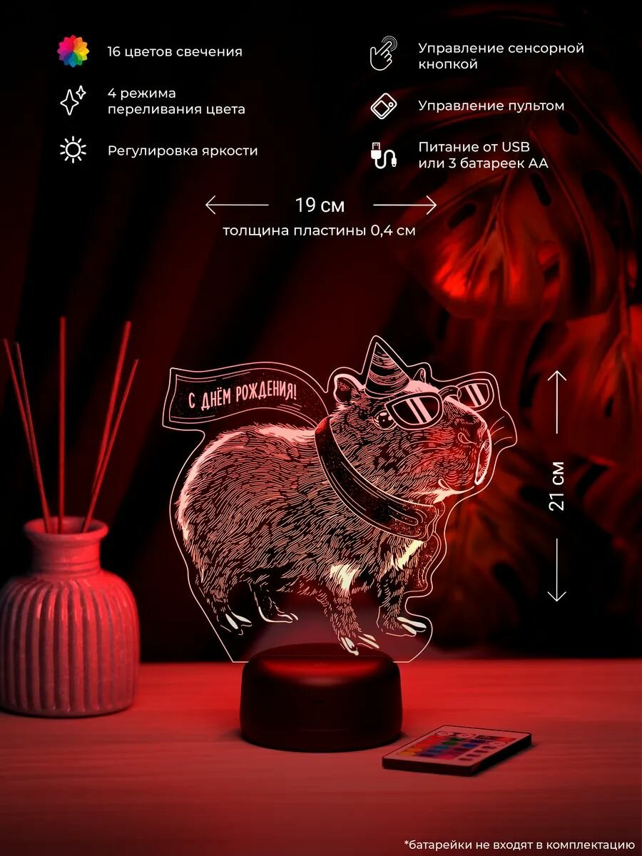 Ночник «Капибара — С днём рождения»: сравнение цен, характеристики, фото, актуальное наличие и цены.