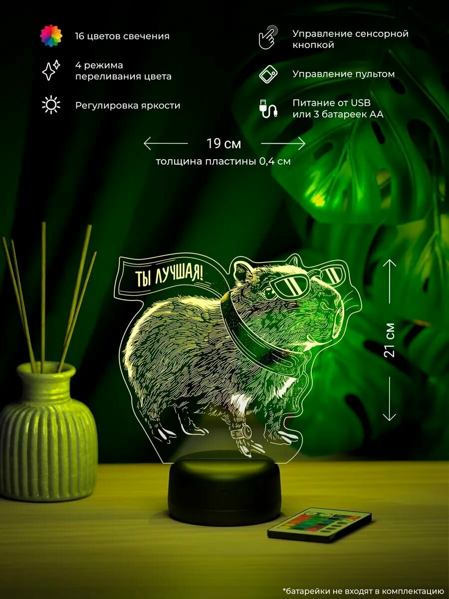 Купить Ночник «Капибара — Ты лучшая» — подарок с доставкой по всей России.