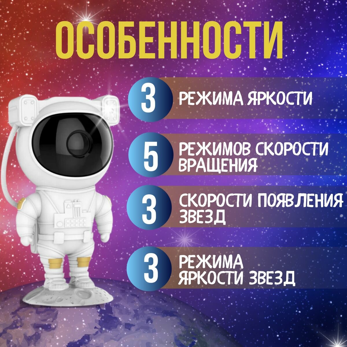 Купить Ночник космонавт-проектор звездного неба детский с доставкой по всей России. Ночник космонавт-проектор звездного неба детский: сравнение цен, характеристики, фото, актуальное наличие и цены.