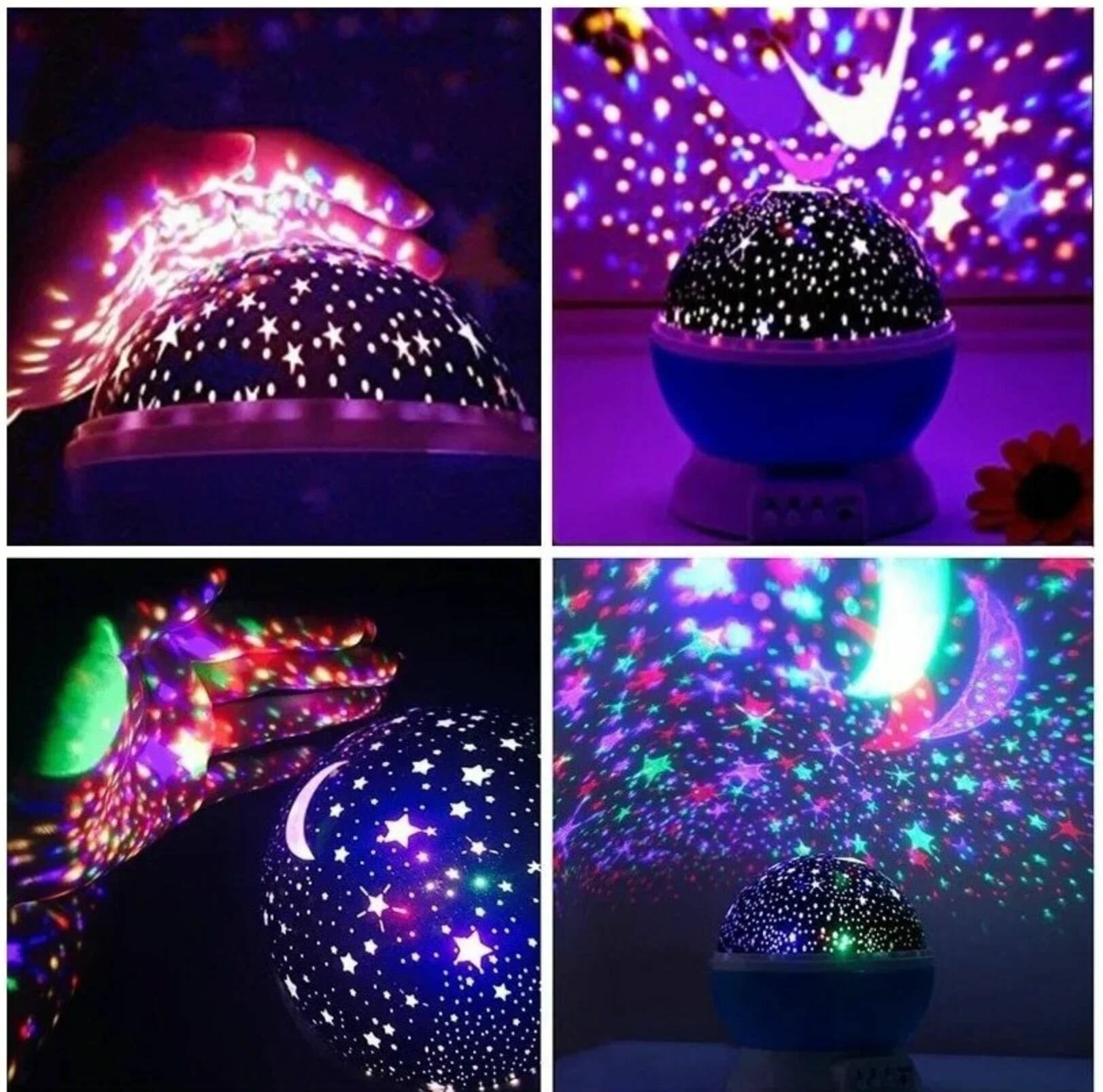 Звезды, до которых можно дотянуться рукой! Детский ночник-светильник для сна "Звёздное небо" с функцией вращения. 16 режимов свечения. Проектор для сна "Звездное небо" освещает комнату на 360 градусов. Присутствует режим вращения проектора - Звезды в движении прямо в комнате. Идеальный подарок ребенку (и не только). Игрушка-лампа ночник имеет 16 режима свечения - спокойный и здоровый сон вашему малышу обеспечен! Светодиодный проектор звездного неба работает от 3 батареек AA или от Usb-провода: можно включить в обычную розетку или в любое устройство, имеющее usb-разъем. Ночник в розетку с выключателем/ Ночник на батарейках Управление одним нажатием. Безопасен для детей и домашних животных: не бьется, не нагревается, без мелких деталей. Защитный колпачок - предотвращает появление царапин при транспортировке. А также приглушает яркость освещения для более атмосферной обстановки. Компактный и удобный в использовании, 14х13 см. Подойдет наш Star Master детский ночник дом и дача для девочки, для мальчика, для новорожденного. Можно поставить проектор ночник в детскую комнату, в спальню. Светодиодный ночник подойдет и как подарок подруге, брату, сыну, дочке, внуку, внучке. Настольный ночник космос - звездный ночник - проектор звездного неба. Подарим вашему ребенку здоровый сон, с помощью наших ночников Star Master, погружающих в атмосферу космоса и мечтаний. Отличный ночной компаньон для вашего ребёнка!