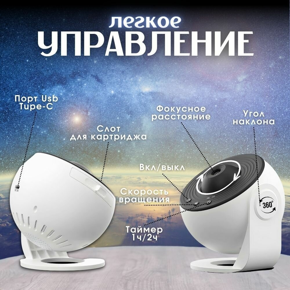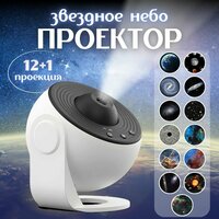 Купить Ночник проектор Звездное Небо, Проектор светильник GALAXY для дома, гостиной, детской, 12 проекций, Бело-черный с доставкой по всей России.