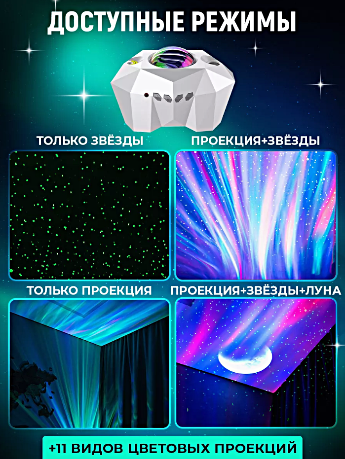 Ночник проектор звездного неба Аврора, Проектор светильник северного сияния для детской комнаты, Белый: сравнение цен, характеристики, фото, актуальное наличие и цены.