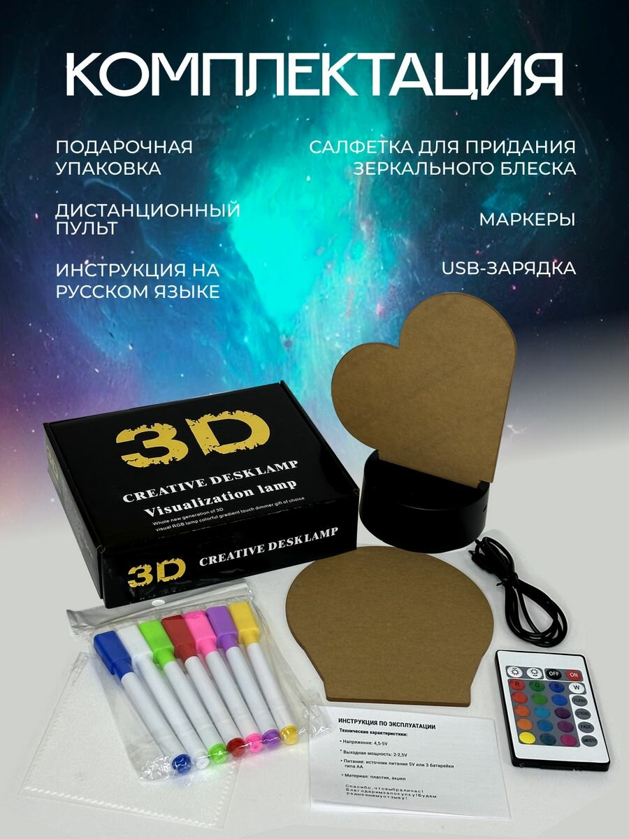 Ночник для рисования имеет 16 цветов, которые круто сочетаются с 3d стеклом. Пиши и стирай, меняй цвета сенсорной кнопкой или с помощью пульта. А еще, у ночной лампы есть 4 режима светодиодной подсветки и регулировка яркости. Именно эти функции позволяют добиваться по-настоящему объемного эффекта изображения, наполняя ярким свечением всю обстановку комнаты. Led светильник создаст уют и вдохновляющую атмосферу в доме. 3D рисовалка станет для тебя другом и помощником, раскроет твои таланты. Ты сможешь рисовать светом, делать креативные заметки и надписи, меняя их по своему желанию. Творите и пишите с помощью светильник настольный, а удаляйте все нашей салфеткой или влажной тряпочкой.