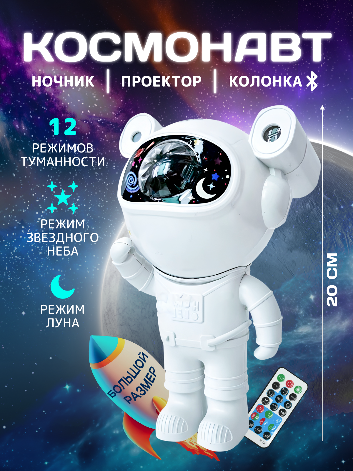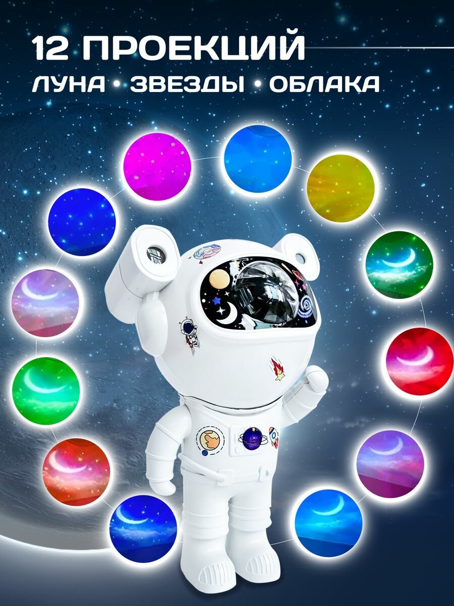 Музыкальный ночник Космонавт украсит ваш интерьер и не оставит равнодушным ваших детей. Проектор звездное небо создаст спокойную и уютную атмосферу в любой комнате вашего дома: спальне, гостиной, детской, ванной. Проекция звездного неба в сочетании с яркими красками космоса создаст уютную расслабляющую атмосферу, которая поможет Вам расслабиться и подготовиться к крепкому спокойному сну. Домашний планетарий имеет устойчивую конструкцию и бесшумно работает. Светодиодный светильник воспроизводит 12 проекций и множество комбинаций в виде ночного неба, луны, космоса, звезд, туманности.