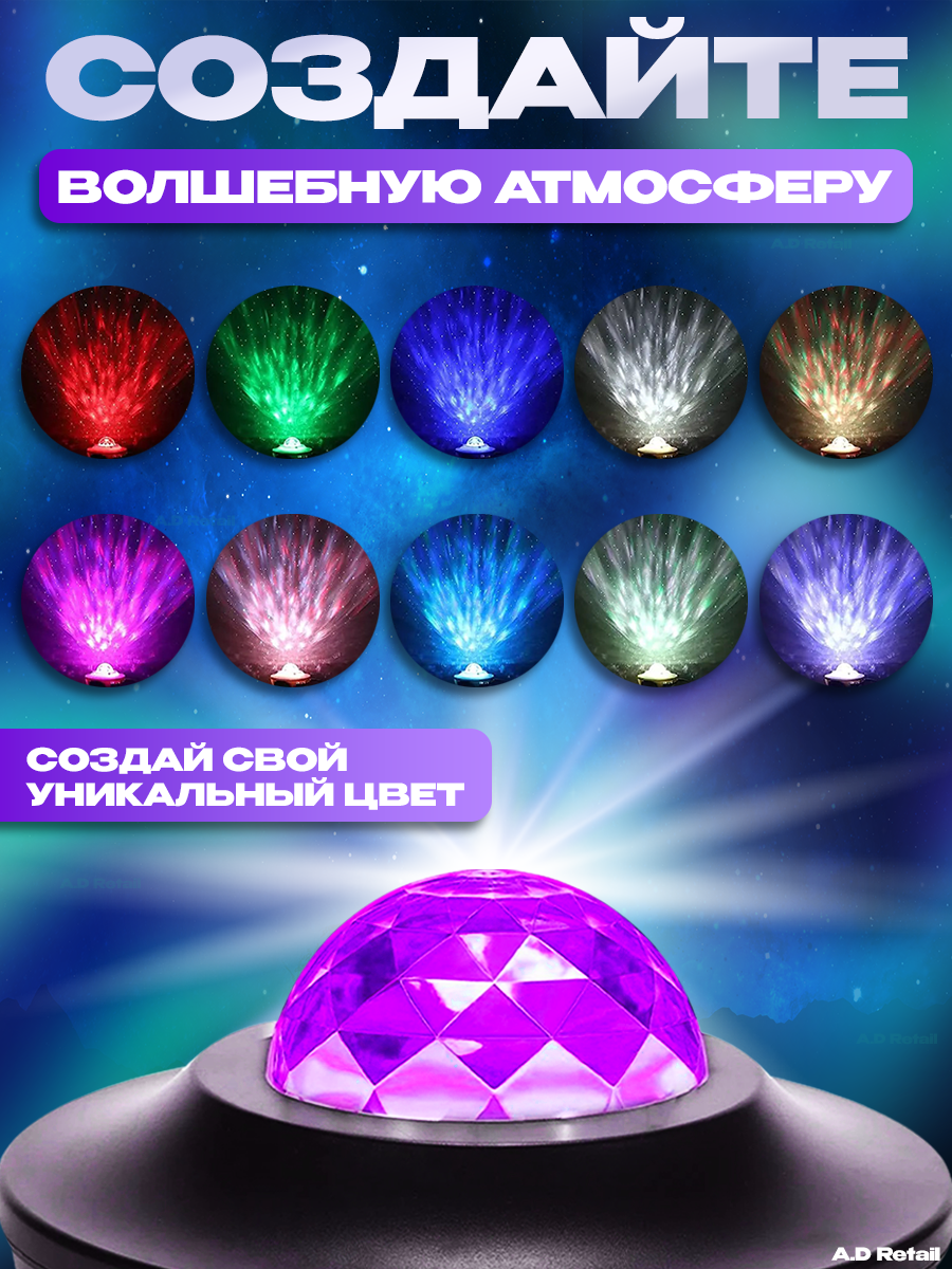 | Особенности | автоматическое отключение, батарейки в комплекте, режим ночника, смена цвета освещения, таймер |