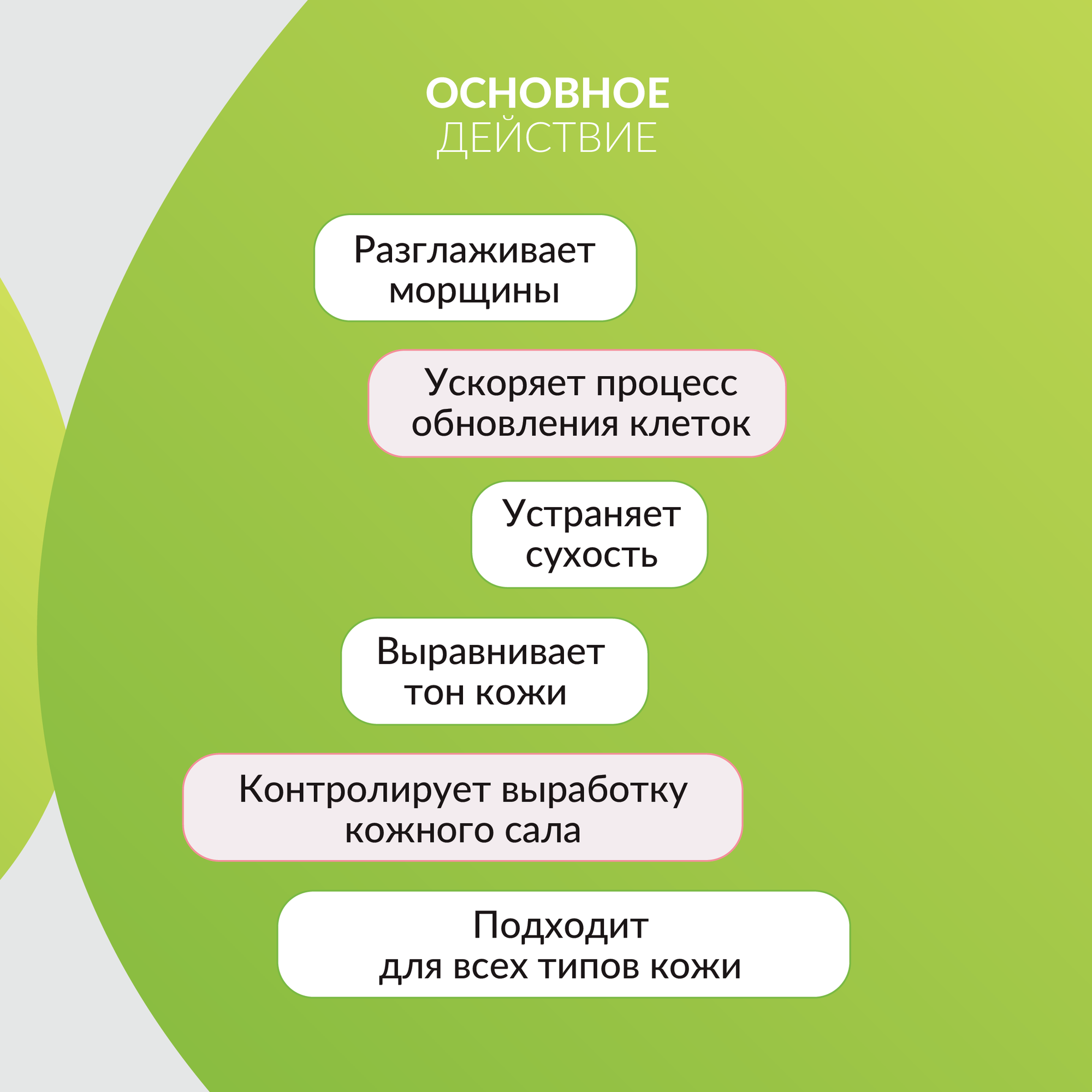 | Эффект | восстановление, выравнивание микрорельефа, лифтинг, омоложение, от черных точек, отбеливание, очищение, питание, повышение упругости, подсушивание воспалений, против акне, снятие воспалений, сужение пор, тонизирование, увлажнение, улучшение цвета, успокаивающий |