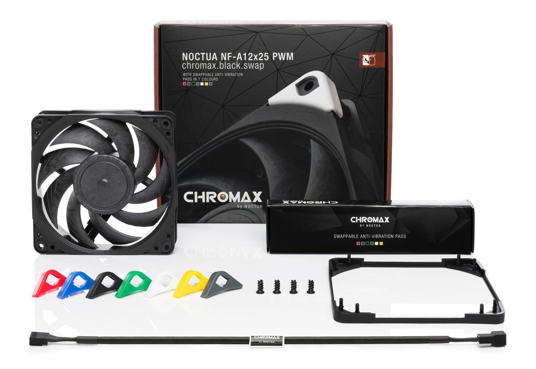 Вентилятор Noctua NF-A12x25 PWM chromax.black.swap (120x120x25mm, 4-pin PWM, 2000RPM, 22.6dBA, 60.09CFM): сравнение цен, характеристики, фото, актуальное наличие и цены.