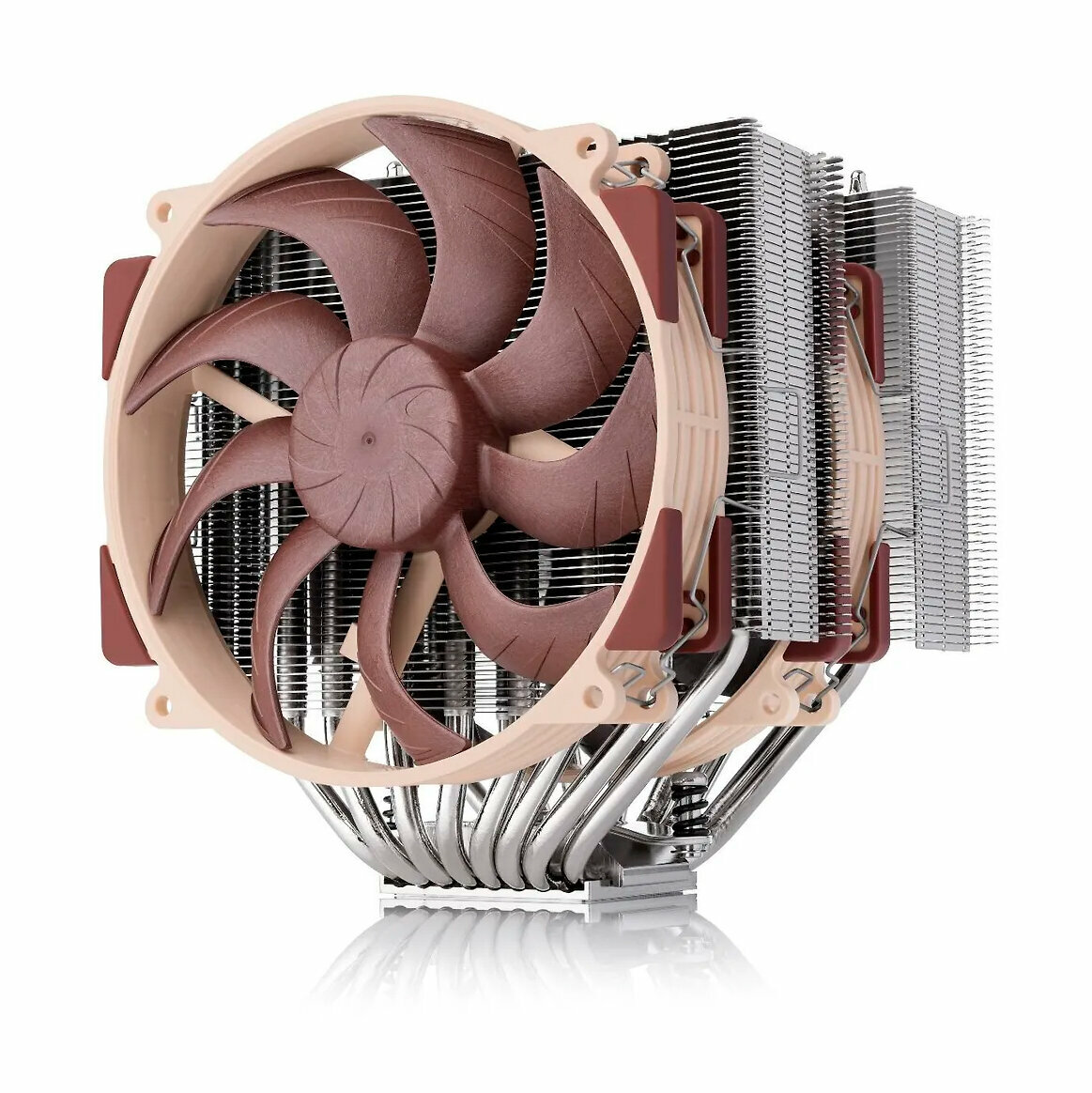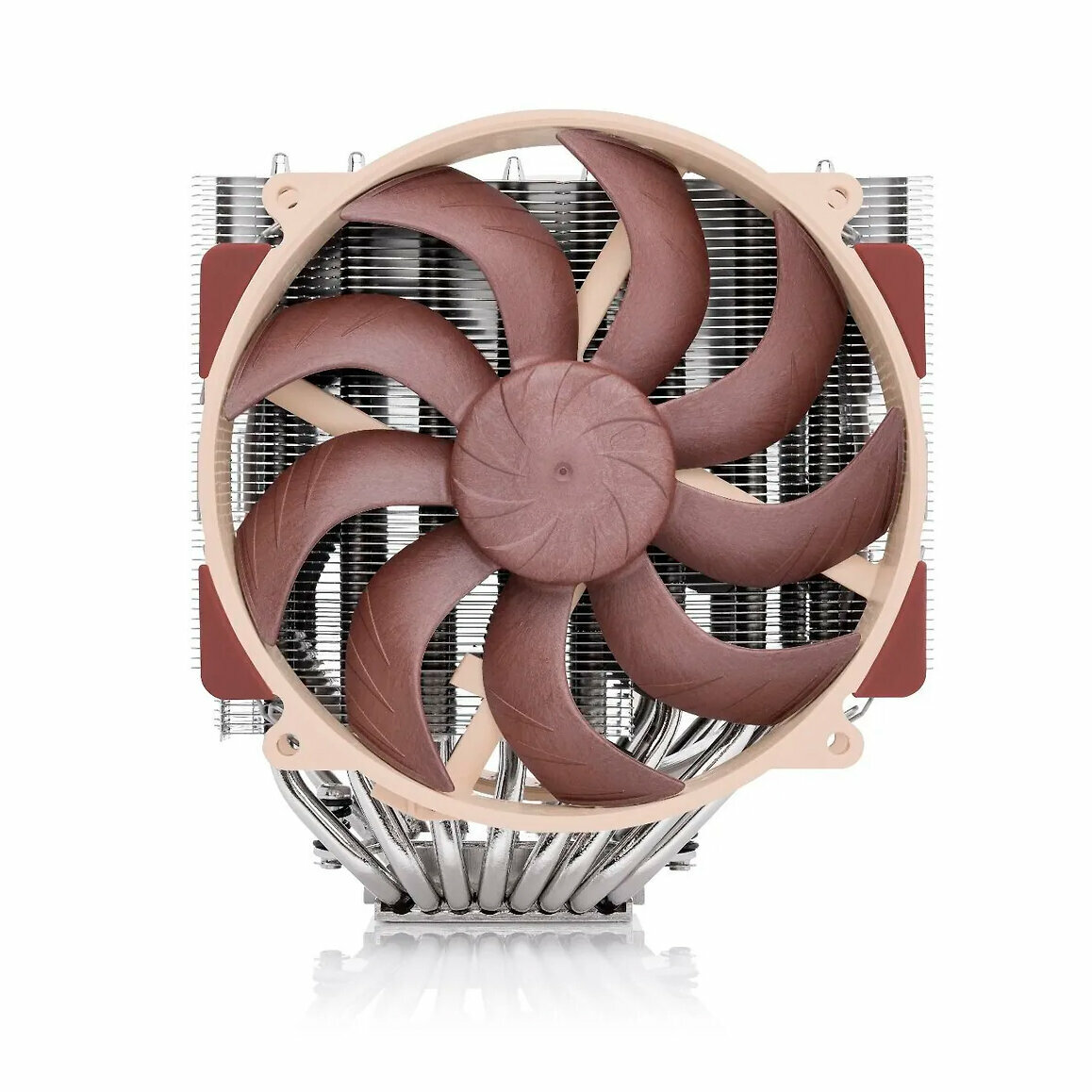 NH-D15 G2 был тщательно оптимизирован, чтобы наилучшим образом использовать превосходный воздушный поток и давление новых вентиляторов G2 PWM. Благодаря улучшенным характеристикам P/Q вентиляторов расстояние между ребрами может быть уменьшено с 1,9 мм до 1,6 мм, что позволило интегрировать 23 дополнительных плавника и увеличить общую площадь поверхности плавника на 20%. В то же время Ширина передней панели была сокращена на 5 мм, с тем чтобы нагрузка между двумя вентиляторами была более сбалансированной.